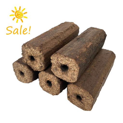 None of our briquettes contain additives or chemicals. They are made from pure, untreated wood by-product and are held together by compression alone.